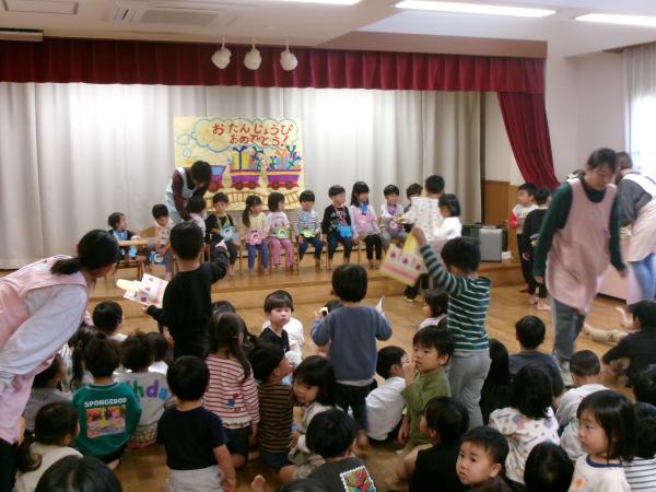 誕生会では 10月生まれの子が自分の名前と
