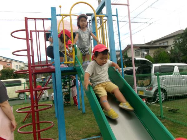 大きなすべり台に大喜びしたり