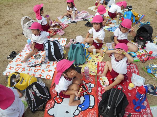 お弁当はゾウさんの前でシートを