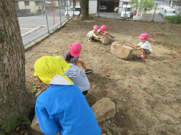 どんぐりや葉っぱを拾う子もいて
