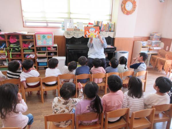 紙芝居やペープサートを見たり