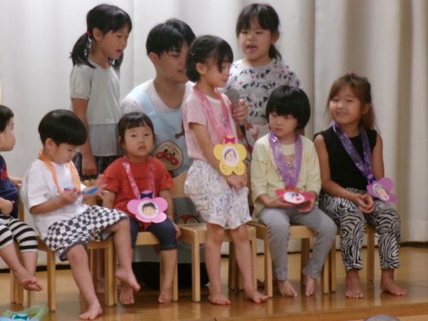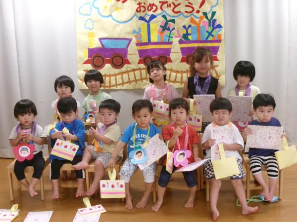 自分の名前と何才になったか 大きくなったら何になりたいか を発表してもらいました その後みんなで誕生日のうたをうたって プレゼントを受け取りました これからも元気に大きくなってくださいね
