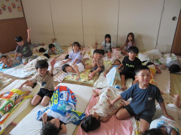 入っているプールの中へ入って バサバサと楽しんでいました 給食やお昼寝ではらいおん組さんが