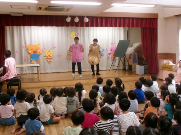 2025/08/28 ★2025年度 8月誕生祝会8月生まれの誕生祝会真夏の日差しがぎらぎらと照りつける8月に 生まれたお友達のお誕生祝会をしました 誕生会では一人ずつ自分の名前や何才になったか 大きくなったら何になりたいか を発表しました そのあと 誕生日の歌でお祝いしてもらい 誕生日のプレゼントを受け取りました これからも元気に育ってくださいね